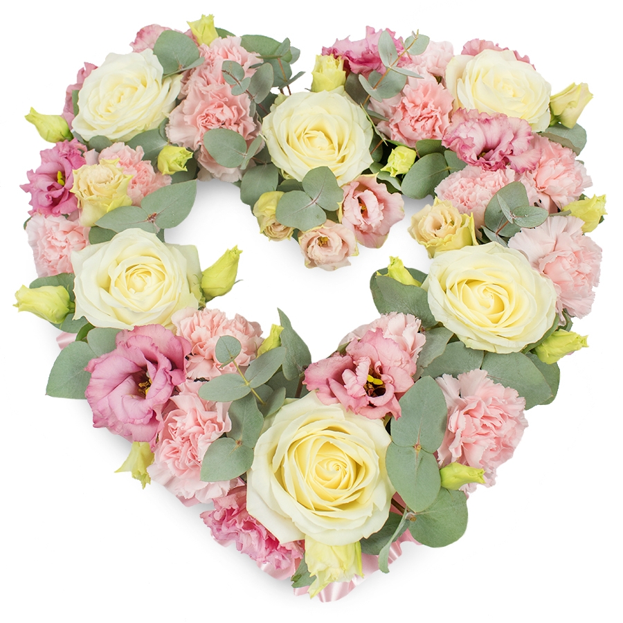 Express your sincere sympathy with our refined sympathy bouquet. This elegant arrangement features a delicate mix of white roses, pink carnations, pink lisianthus, and eucalyptus leaves, each flower hand-selected for utmost freshness and beauty.